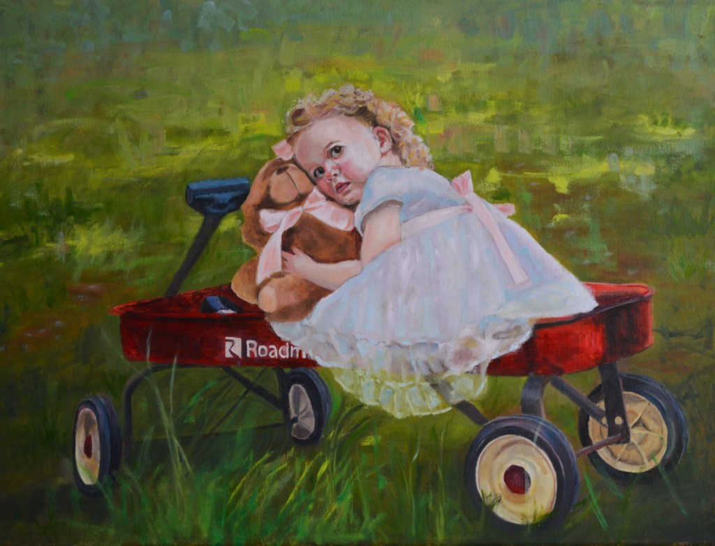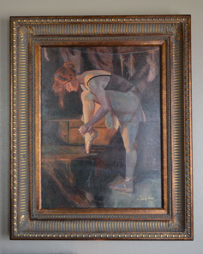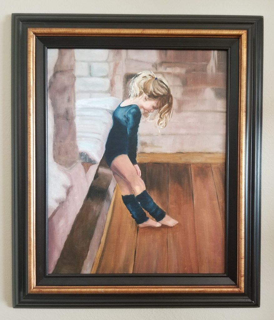“Lainey in Repose” This is a painting of my granddaughter Lainey as she prepares for a dance concert. Copied from an unknown artist.