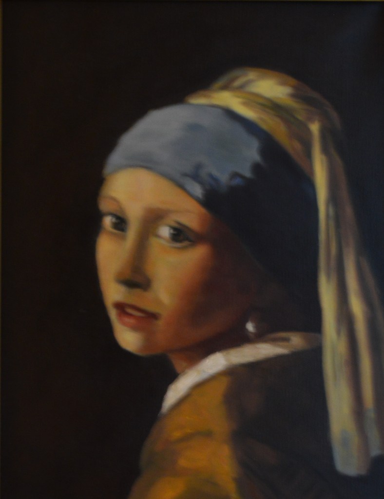 “Girl in the Pearl Earring” copied from Jahannes Vermeer painting of “Girl in the Pearl Earring”.