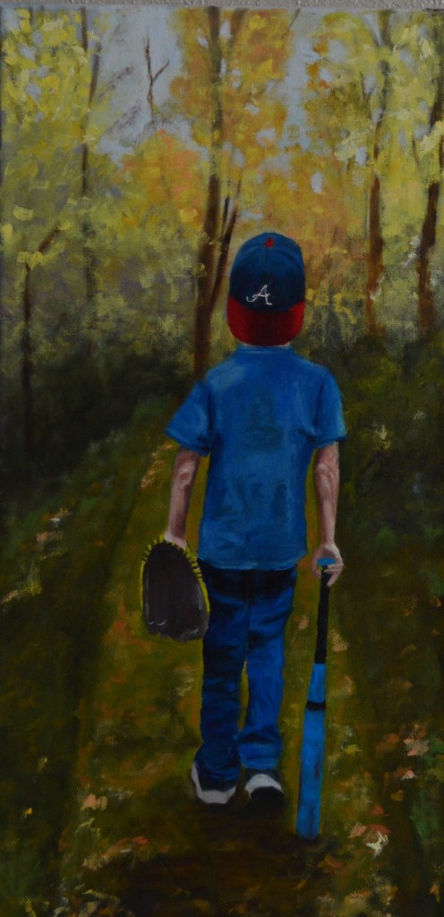 “Mr. October” On a autumn walk with my grandson Kent, walked in front of me, his bat in one hand and his baseball mitt on the other hand. The perfect statement of boyhood.