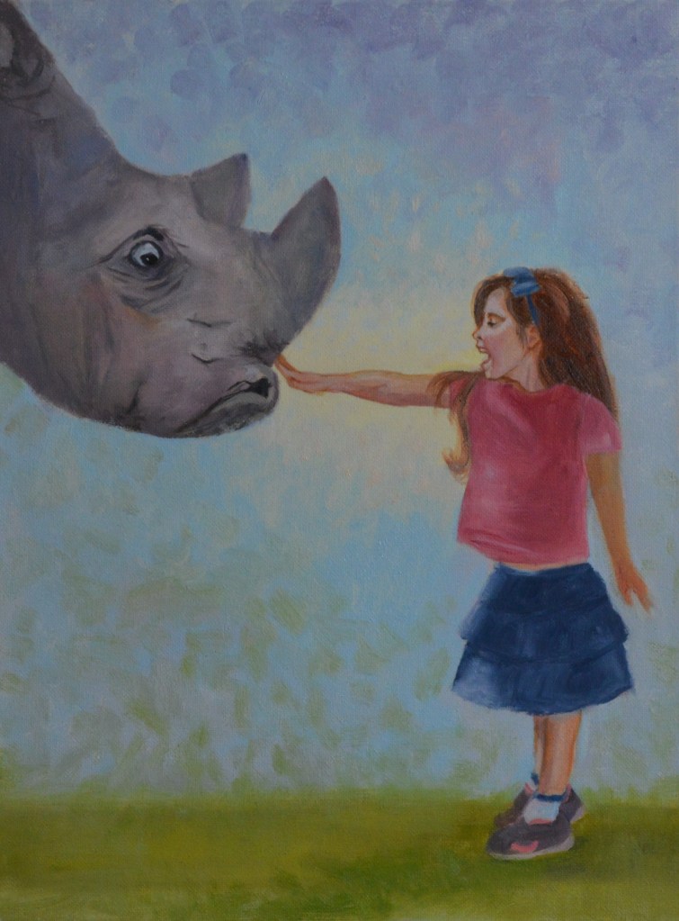 “Big Sister in Charge” This painting is symbolic of the relationship shared with my big sister Teena. Copied from an unknown artist.